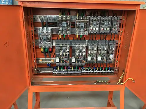 PE线与端子板连接必须采用电气连接,电气连接点的数量应比箱体内回路数量多2个,1个为PE线进箱体的连接点,1个为重复接地的连接点。