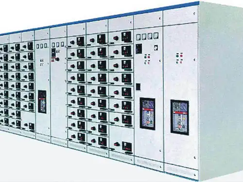 动力配电柜为封闭式,壳体是由薄钢板弯曲焊接而成。操作开关在箱体前面上侧,可作切换电源之用。箱前上方装设母线电压表,用来指示汇流母线电压,正面有门,打开门后便于进行检修设备。门上可以装设仪表、信号指示灯、开关、按钮等。箱内布放自动开关、接触器、互感器、熔断器等。