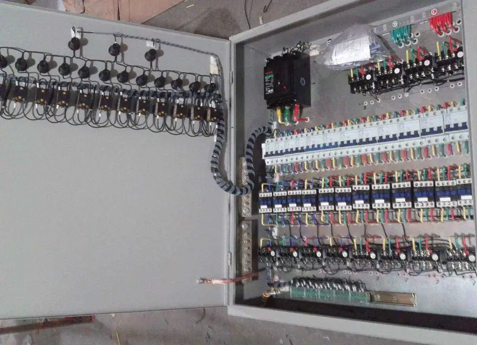 配电箱顾名思义就是电力供电系统中用于进行电能分配、控制、计量以及连接线缆的配电设备,一般供电局、变电所都是用高压开关箱,然后经变压器降压低压侧引出到低压配电箱,低压配电箱在到各个用电的配电盘,控制箱,开关箱,里面就是通过将一些开关、断路器、熔断器、按钮、指示灯、仪表、电线之类保护器件组装成一体达到设计功能要求的配电装置的设备。